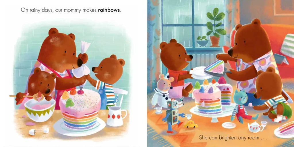 Mommies can do anything—they can fly dragon kites, make rainbow cakes, build blanket forts, and fix broken toys, and they’re always there to love their children!
