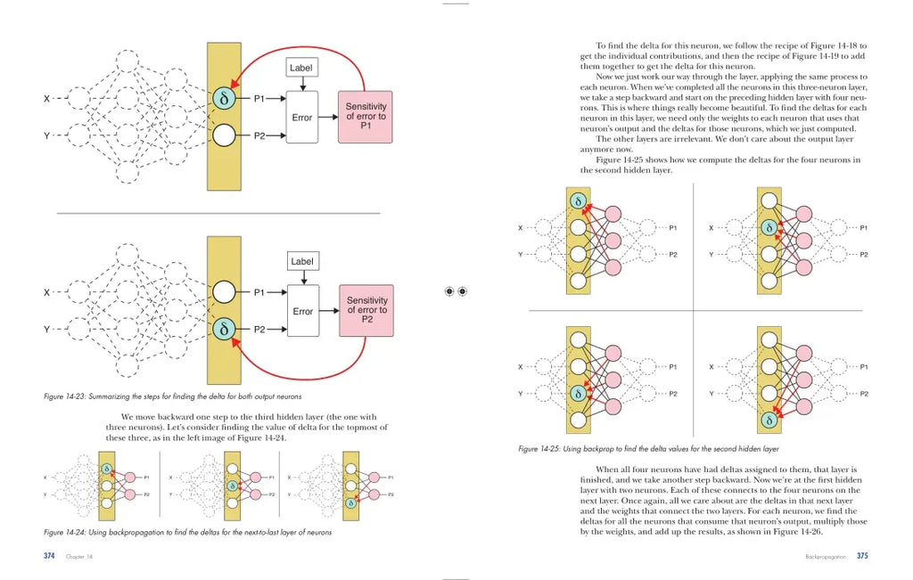 The book's conversational style, extensive color illustrations, illuminating analogies, and real-world examples expertly explain the key concepts in deep learning, including: