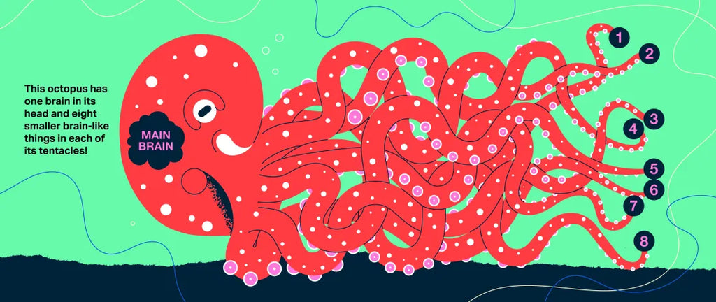Brains combines bold, colourful illustrations with jokes and incredible science facts to introduce young readers to the amazing wobbly marvels inside their heads, and those of many other animals.