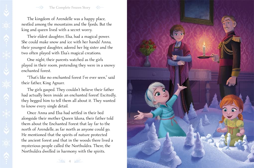 Experience the complete Frozen saga in this special storybook that weaves together both movies, from magical beginnings to the heart-pounding conclusion.