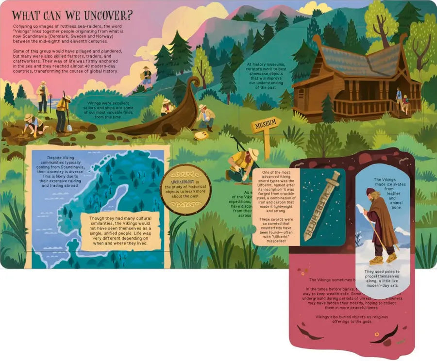 With more than 80 lift-the-flaps and with flaps under flaps, this book for children ages 8-12 introduces readers to the truth behind some of the most incredible Viking stories and superstitions. This immersive book unearths fascinating aspects of an illustrious culture.