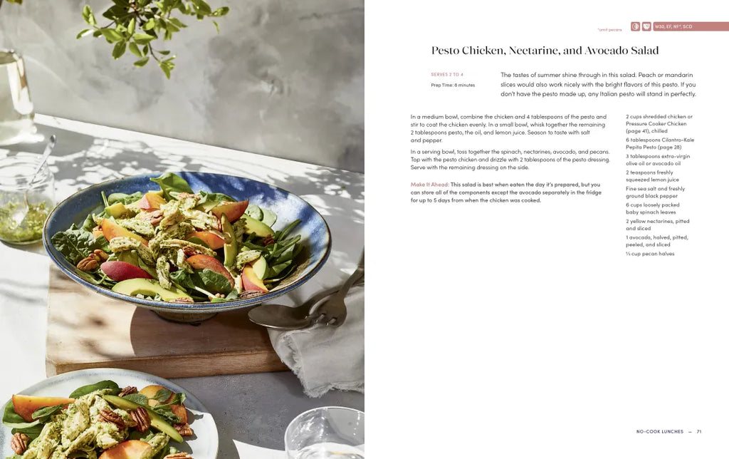 • No-cook lunches: Pesto Chicken, Nectarine & Avocado Salad; Thai-Style Shrimp Salad; Steak Lettuce Wraps with Horseradish Cream Sauce