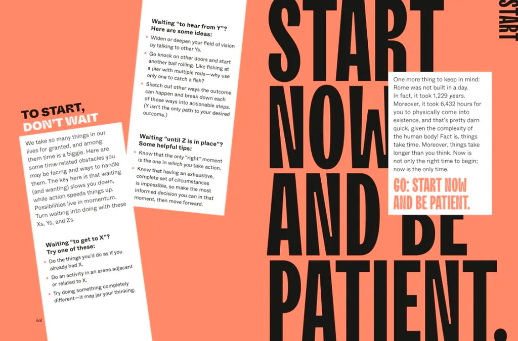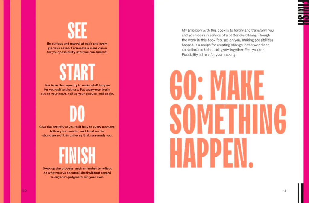 It’s hard to begin, uncomfortable to not know, natural to question yourself, easy to be impatient, and challenging to swallow setbacks. This book addresses all of these hurdles and walks you through four main stages of turning your idea into reality: SEE (imagine what’s to come), START (just begin, this is everything), DO (show up and work), and FINISH (follow through).