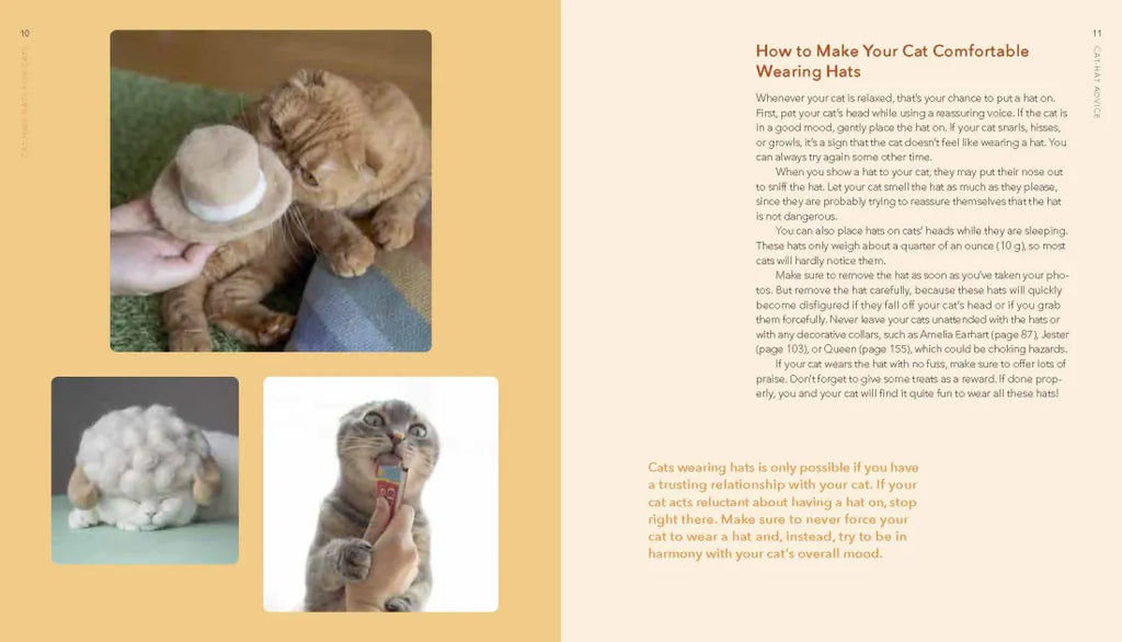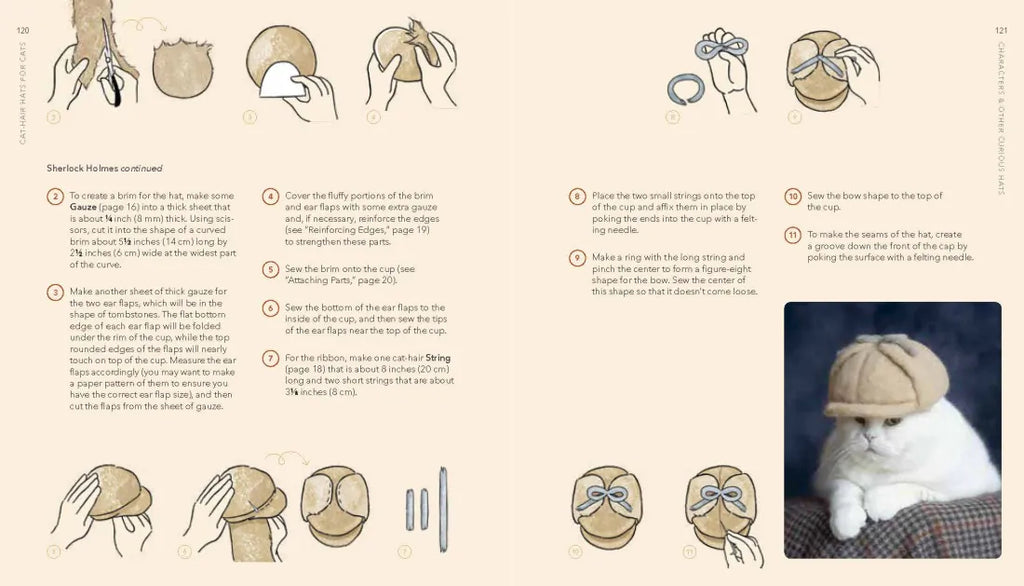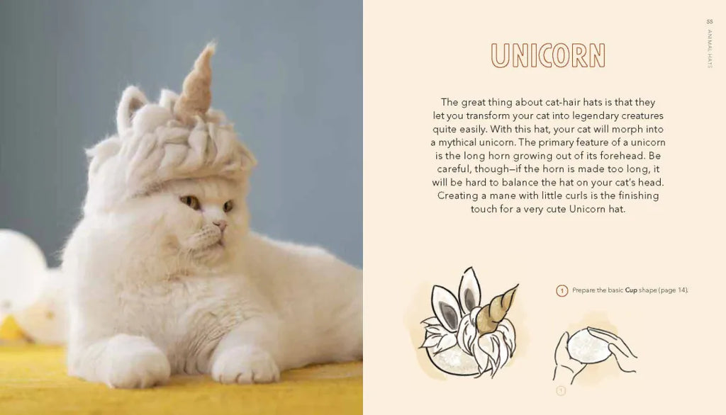 Cat-Hair Hats for Cats contains step-by-step instructions for constructing twenty-five stylish hats, along with advice on grooming and photographing your cats. And with tips from popular Instagrammers rojiman and umatan, you’ll be designing your own custom cat-hair creations in no time.