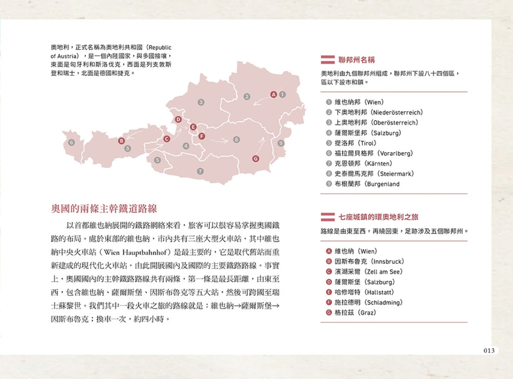 接壤多國的奧地利不只火車網絡完備、治安友善、市容潔淨,還有令藝文愛好者深深著迷的豐厚文化資產,熱愛親近自然的旅人也會傾心於它的湖光山色。