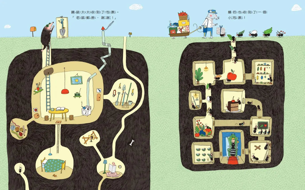 ▍老鼠郵差上山下海去送信,勤奮負責、努力工作的態度,以及和動物們和諧相處的模樣,充滿正能量。