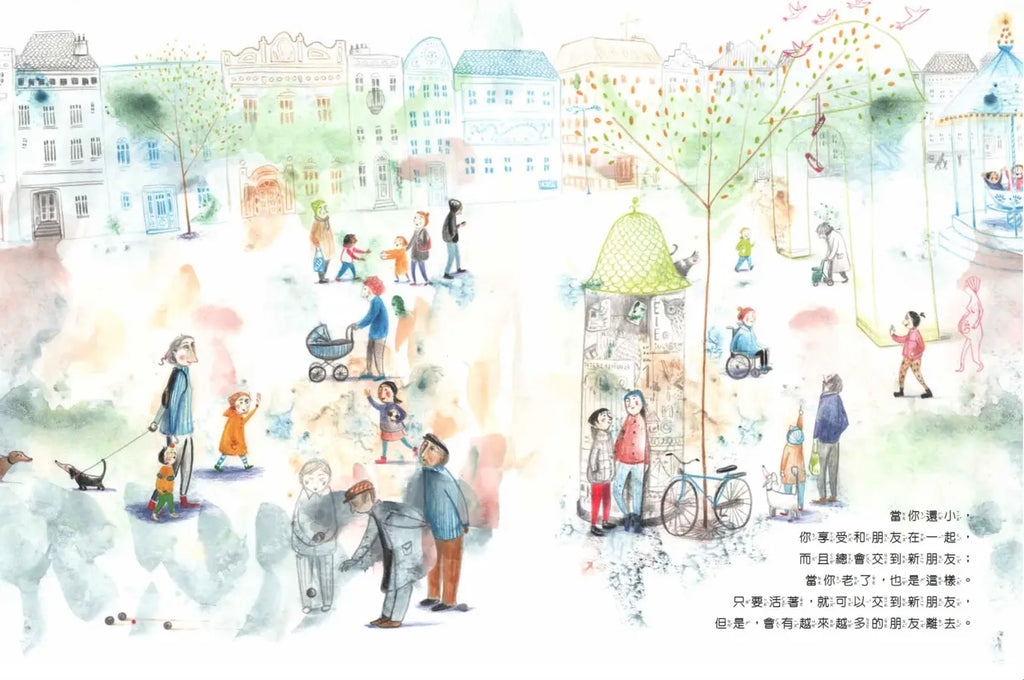 2. 清新溫柔的圖文合奏:除了出色蘊含哲思的文字外,本書繪者作品曾獲得波隆納拉加茲童書獎和白烏鴉獎等繪本大獎肯定。插畫風格獨特,通常以水彩、色鉛筆和粉彩筆等媒材創作,特色是以柔和細膩的方式讓現實和幻想完美結合,呈現出獨有的氛圍。