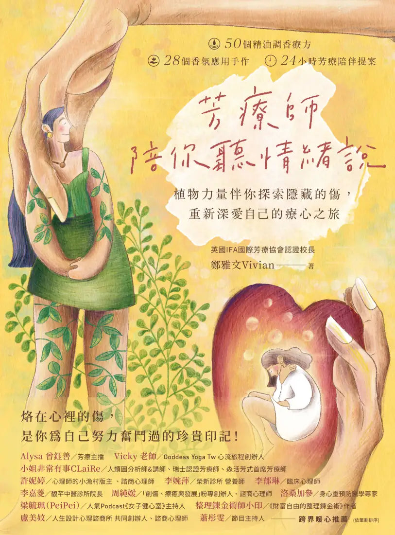 情緒每天都伴隨著我們面對人、處理事,它可能是種武裝、可能是人際關係的手段,或是自我保護的方式,甚至是你深不自知的呼救警訊…因為,情緒的外顯表現不見得能完全對應你當下的身心需求。作者鄭雅文Vivian老師是英國IFA國際芳療協會認證校長,集結多年來的芳療教學及臨床經驗、與學生們的交流對談,誕生了這本療癒之書。本書帶你細細探看「喜怒悲樂驚恐愛」代表的各種涵義,分析每個情緒生發之際的表徵、生理狀態、強弱影響…等,進而深入了解情緒成因及背後的真實需求;再以自我對話練習、植物療癒力量、脈輪清理、24小時的芳療撫心陪伴,溫柔撫慰隱隱作痛已久的傷,好好聽情緒說,坦然擁抱自己的內在小孩!