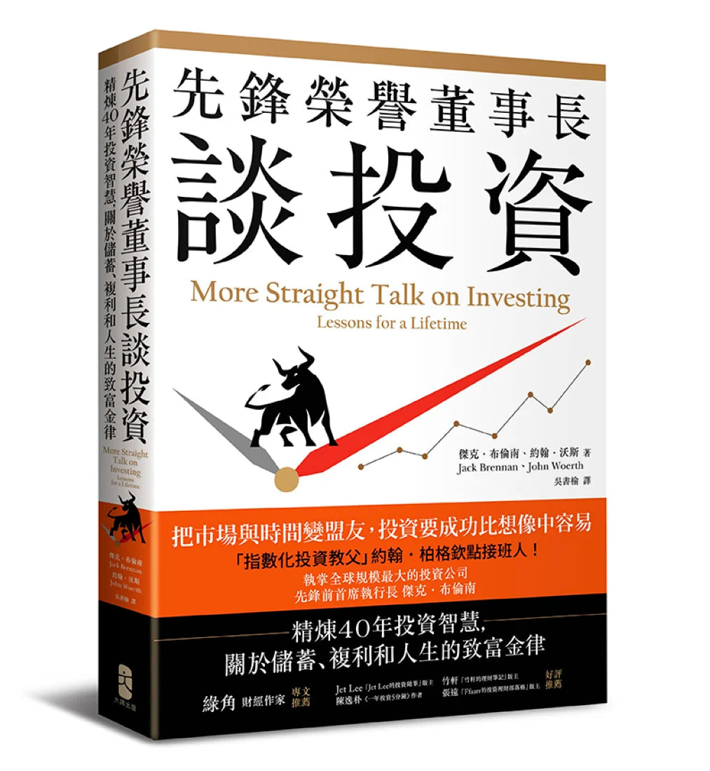 「正確觀念總是歷久彌新,好書總是流傳百年。而講指數化投資的好書,二十年後更新再版,一樣能有效幫助剛踏入社會的朋友。你想擁抱美好人生嗎?你想脫離階級世襲嗎?那你一定要來讀這本不只談投資,更是充滿人生智慧的《先鋒榮譽董事長談投資》!」──Jet Lee,「Jet Lee的投資隨筆」版主
