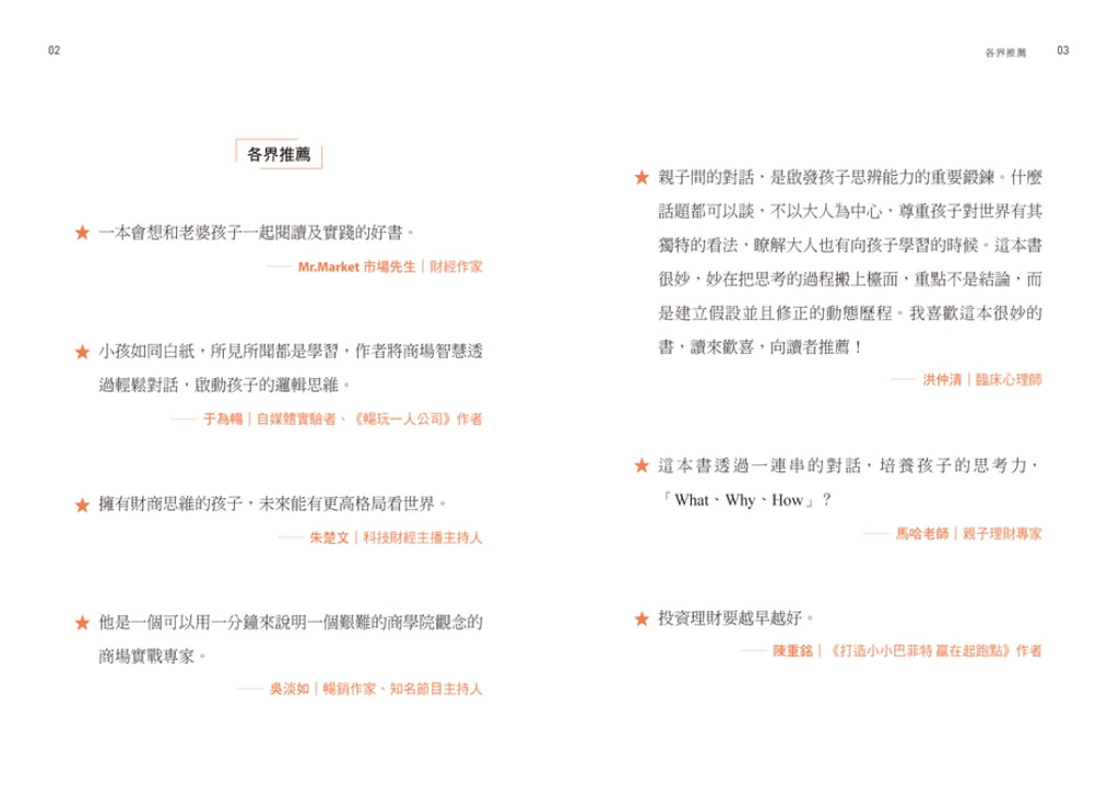 ─「內容生動活潑且言簡意賅,讓我迫不及待想與孩子們分享書中實用的財商思維。」