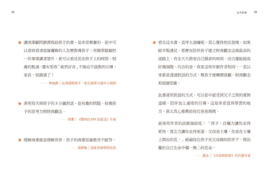 ─「小孩如同白紙,所見所聞都是學習,作者將商場智慧透過輕鬆對話,啟動孩子的邏輯思維。」