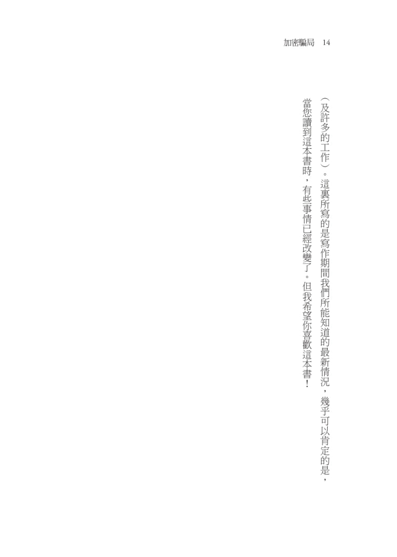 「《加密騙局》是對人性及其惡魔從加密經濟的前沿浮現出來的一個引人入勝的故事。這本書對於投資者、監管機構和我們金融未來的建設者來說是必讀之作。」 - 雷克斯‧索柯林(Lex Sokolin),金融科技未來學家和哲學家,《The Fintech Blueprint》創辦人,《ConsenSys》首席經濟學家
