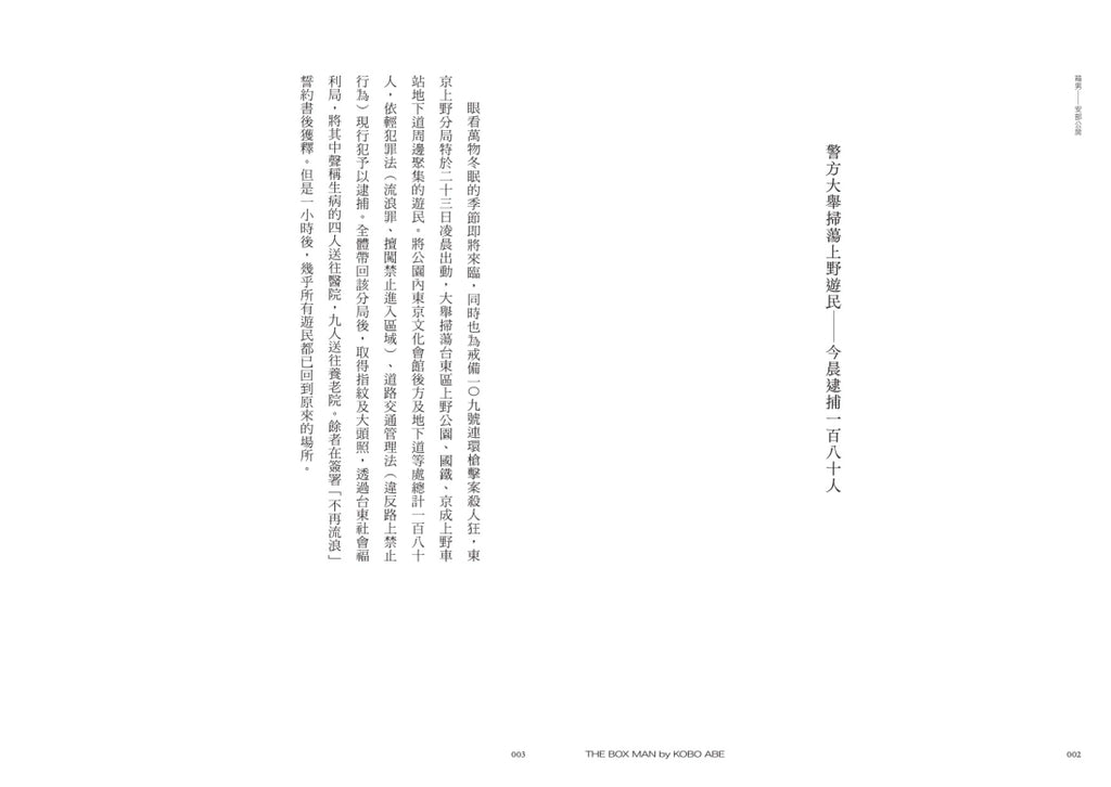 一九二四年生於日本東京都,原籍北海道旭川市,係日本當代知名文學作家及劇作家,因作品風格獨特,有「日本卡夫卡」的美譽,更是日本當代前衛文學的代表。安部公房的重要作品包括:《紅繭》(赤い繭,1950)、《牆》(壁,1951)、《沙丘之女》(砂の女,1962)、《他人的臉》(他人の顔,1964)、《燃燒的地圖》(燃えつきた地図,1967)、《箱男》(箱男,1973)等,至今在世界各國仍擁有廣泛的讀者群,不少作品甚至先後被搬上銀幕。歷年作品中,《紅繭》獲得戰後文學獎,《牆》獲得芥川文學獎,《沙丘之女》獲得法國最優秀外國文學獎。