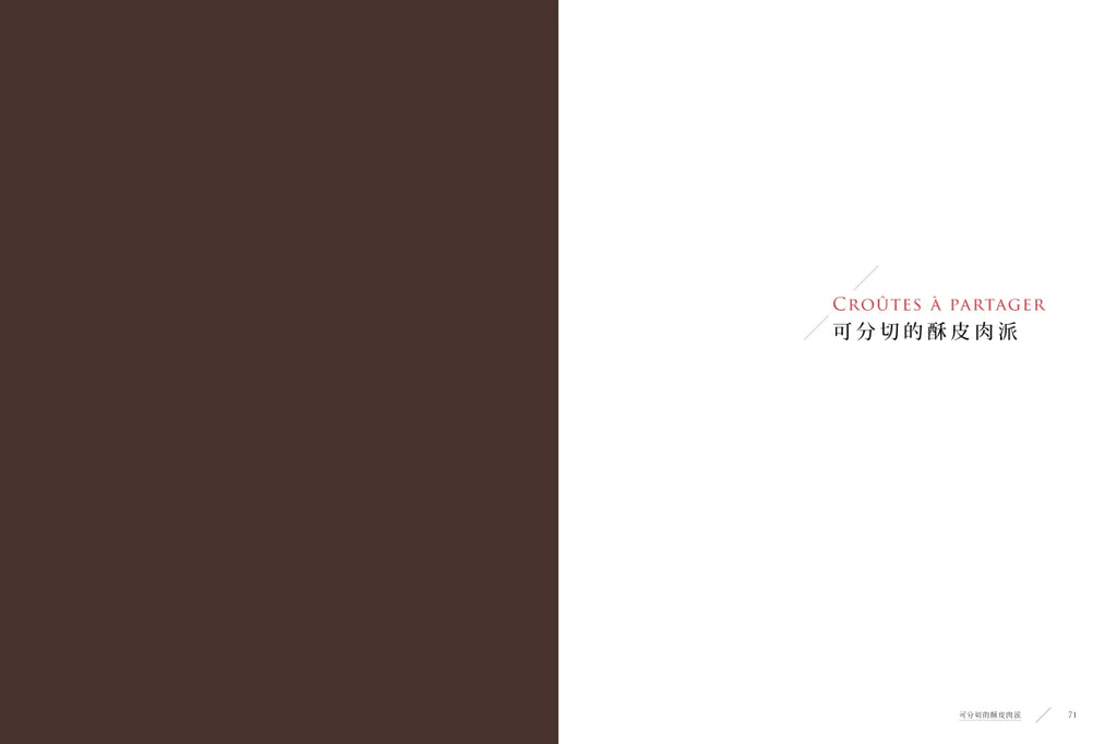 本書是「波札餐廳」主廚卡倫‧托洛桑的唯一代表作,前半部介紹一系列菜色,無論從開胃菜、冷盤、魚或肉類主菜到甜點,皆呈現出他一貫的嚴謹手法與絕佳執行力;後半部的「祕密與技藝」則以「基底」和「組合」為主題,介紹不同麵團與內餡的詳細製作步驟。除此之外,更收錄十一道招牌肉派食譜,包括讓他一舉奪得世界冠軍的「貴族法式肉派」,以及皮蒂維耶酥皮餅、庫利比亞克等難得一見的經典派餅,作工極盡繁複,成品令人讚嘆,是想要一窺法式肉派堂奧的料理人不可錯過的最佳參考。