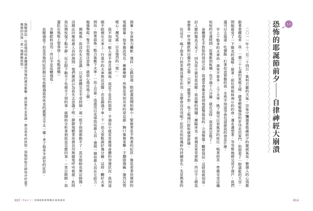 儘管自律神經失調往往不被視作是疾病,但它帶來的困擾卻不比其他健康問題來得少。歷經多年病痛折磨,芳喵抱著死馬當活馬醫的心情,開啟一段新的治療旅程,架設了部落格「芳喵隨筆」,寫下這段時間以來的治療經過與心路歷程。起初只是為了記錄與分享,卻意外獲得病友們熱烈迴響,部落格瀏覽人次迅速突破百萬(現已超過470萬次點閱),更贏得社群網友們的極力推薦。