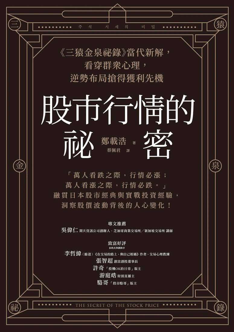 韓國富爸爸鄭載浩,投入股市40年,頭20年裡5度破產還賠了房子;而讓他重獲成功、賺得百億韓元身家(2.4億新臺幣)的轉捩點,正是《三猿金泉祕錄》!他期待這本改變他命運的經典,能改變更多人的投資生涯,於是擷取原典逐段解析,搭配當代股市實例與自身交易經驗,為這本超越時代的行情經典,帶來更親近當代股民的全新風貌。