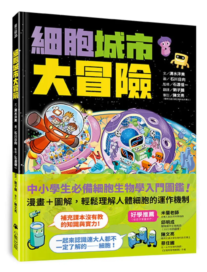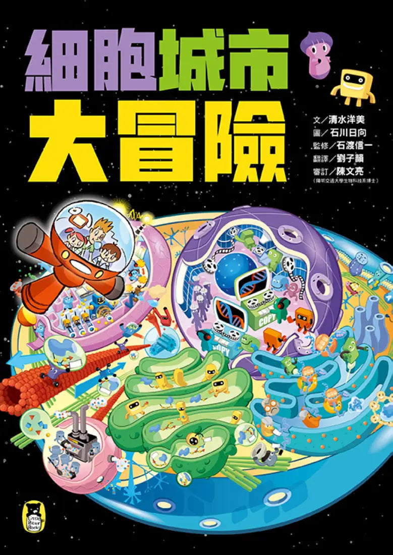 《細胞城市大冒險》是一本妙趣橫生、深入淺出的佳作,透過生動的圖像和輕鬆有趣的解說,讀者將輕鬆掌握細胞組成、生命元素DNA轉化為蛋白質,以及細胞運作等重要概念,是每個人的「第一堂細胞生物學」入門書。——陳文亮(國立陽明交通大學生物科技系博士、本書審訂老師)