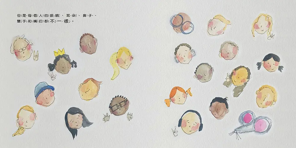 眼睛讓我們可以看見。耳朵讓我們可以聆聽。雙手讓我們可以觸摸。鼻子讓我們可以聞到味道。嘴巴讓我們可以嘗到味道和說話。但是,我們每一個人的眼睛、耳朵、鼻子、雙手和嘴巴都不一樣。