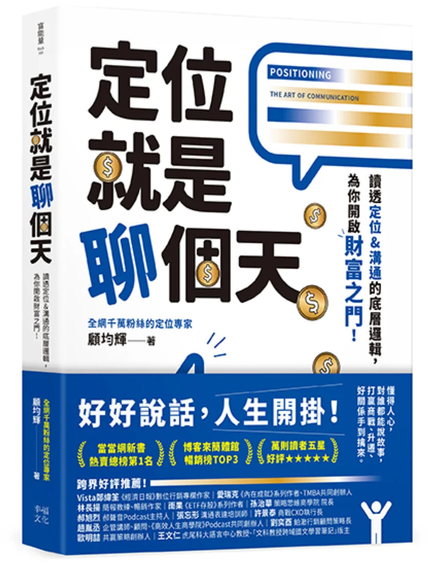 在賺錢越來越難的時代,需要「定位」這把成功之鑰,為你開啟財富之門、在商戰中殺出血路!本書作者顧均輝是擁有千萬粉絲、二十多年教學經驗、上萬間企業爭相向他學習商業戰略的定位專家。「定位」之法的精髓是成為「會說故事的人」,進而讓認知大於事實、強化事實,甚至用認知創造事實,以及身軟嘴暖地經營人脈和人際關係,只要讀透定位&溝通的底層邏輯,沒有你搞不定的人!