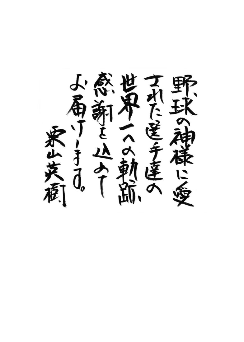 2022年,栗山英樹接下經典賽日本國家代表隊總教練一職。曾在2006、2009前兩屆經典賽奪冠的日本隊,卻在接下來兩場賽事止步於準決賽。栗山所背負的,不只是要讓日本奪回暌違14年的榮耀,更有著必須感動所有球迷,復興日本棒運的重責大任。