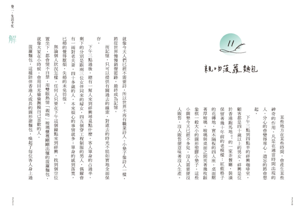 書中的文章,有著文學的沉靜感,作者細膩的觀察描寫生活。在作者看來,那些溫暖的時刻,有著相思的味道,值得記錄下來,以便回味──空曠的會議室,喧嚷的餐廳,小巷中的咖啡店,一顆葡萄乾,一盞路燈,作者用她的眼睛,觀察著這個世界,並用心書寫下來,享受自己曾經不慌不忙的度過這些時光。