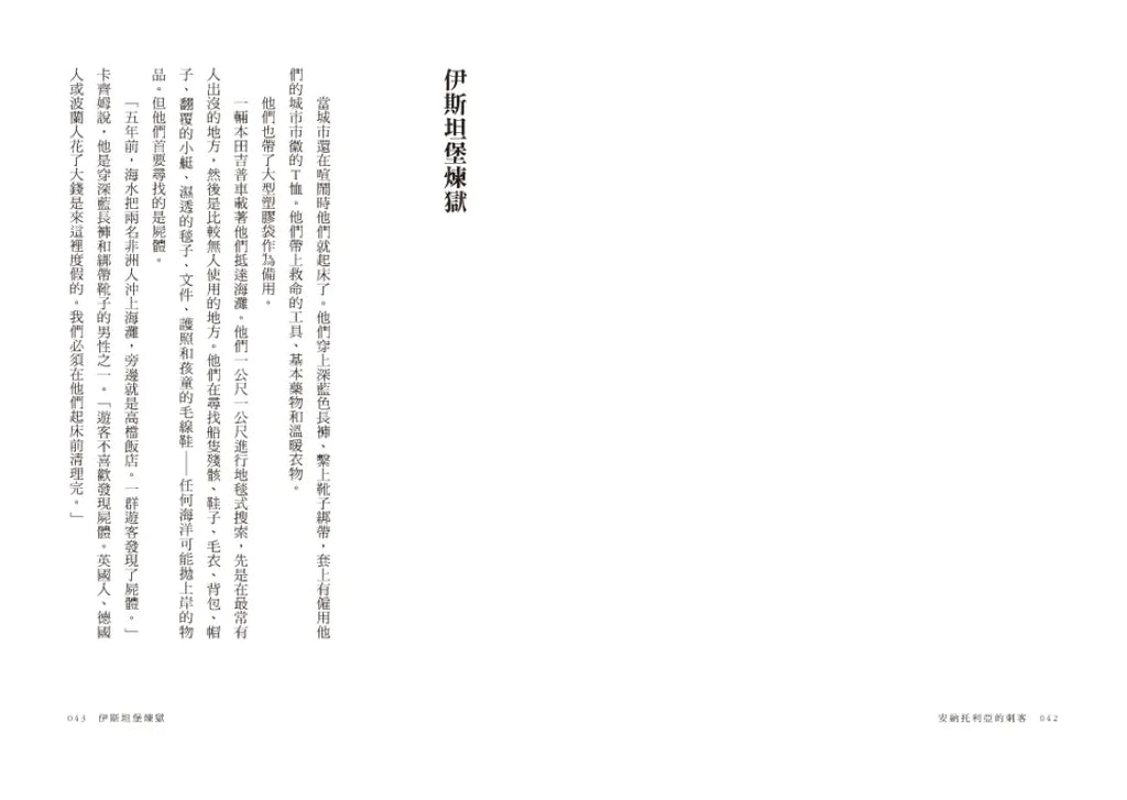 2013年,土耳其之春爆發之際,波蘭記者沙博爾夫斯基帶著睡袋和錄音筆,踏上這片神祕的大陸。他在抗爭現場採訪讚美總理「屁股很性感」的跨性別男子;在陽光明媚的海灘,拾起翻船難民遺留的夾腳拖。他在東土耳其傾聽受榮譽殺人威脅與被逼賣淫的女性訴說經歷,更去到盛產杏桃的純樸古城──據說那裡出了一位謀殺西方教宗的刺客。