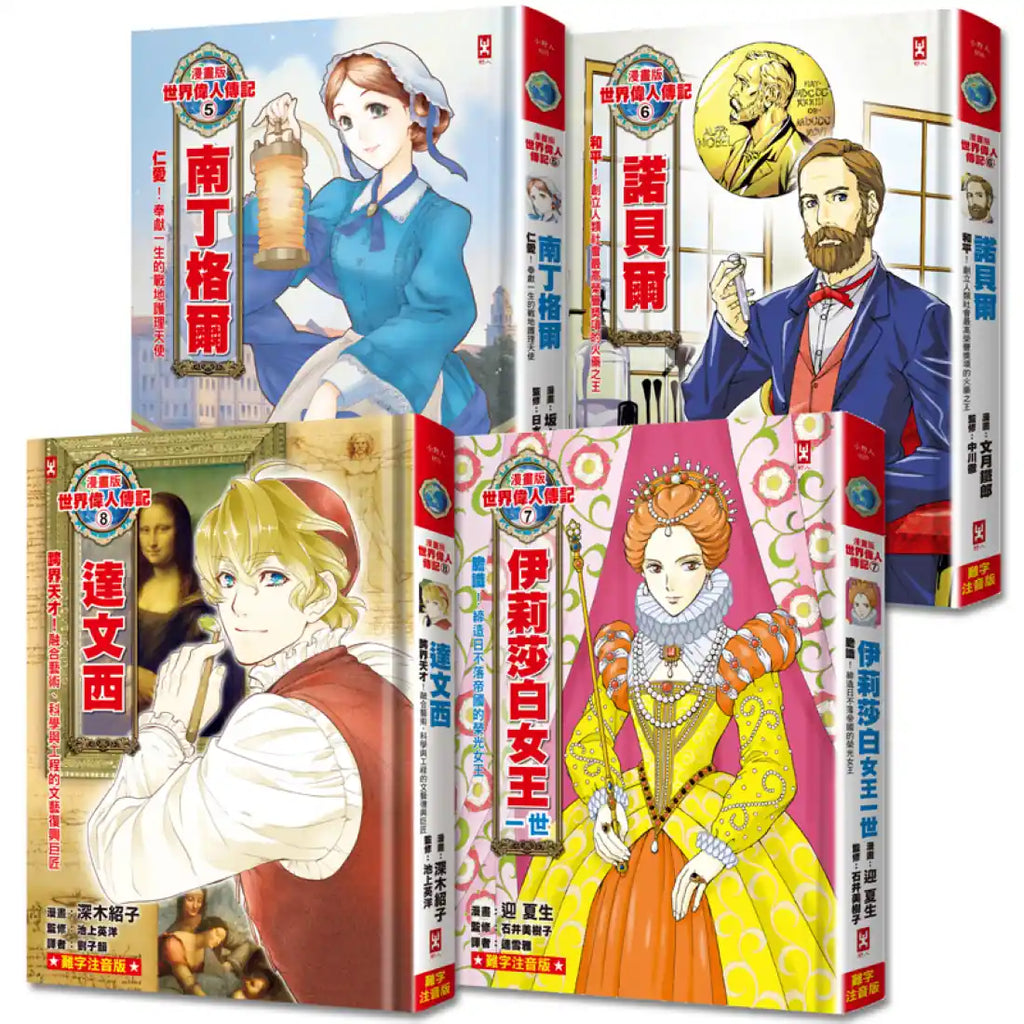漫畫版世界偉人傳記(專家監修・難字注音版)(5)~(8)四冊套書【南丁格爾+諾貝爾+伊莉莎白女王一世+達文西】