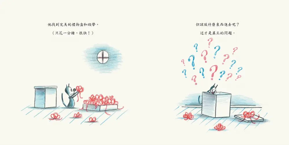 這是一個特別的日子。在今天結束前,奇奇想找到最完美的禮物,送給他最好的朋友小歐。他找到完美的禮物盒和緞帶。但該放什麼東西進去呢?奇奇想破腦袋,要送什麼禮物,才無可取代?他上看看、下看看,才發現......