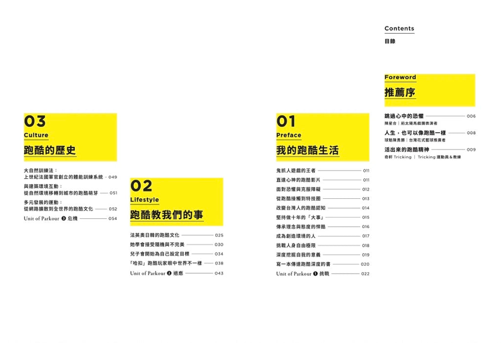 「這不是一本普通的運動書。它就像一位熱血又理性的導師,用最真誠的方式,帶你認識跑酷這門藝術。」