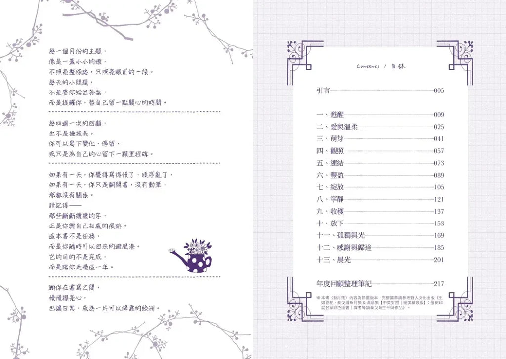 【主題引導】:以清晰而溫柔的主題,為生活定錨,讓每一個月都有內在重心。