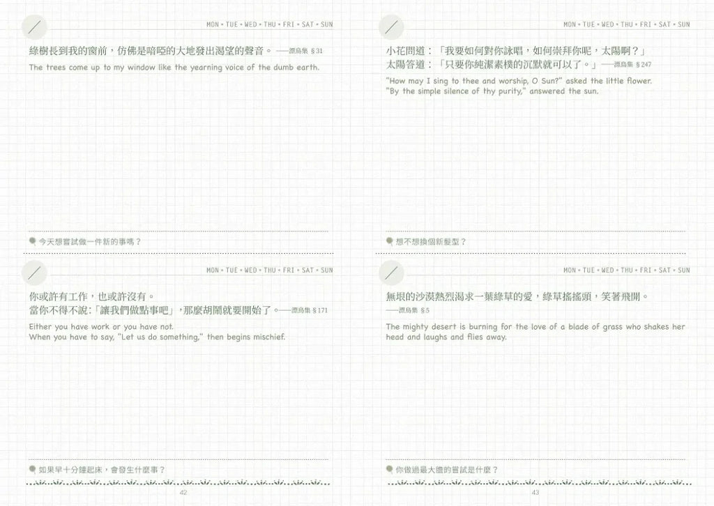 【詩句簡短易寫】:精選泰戈爾詩句,長度剛好,每天一點點,讓書寫成為日常而非負擔。
