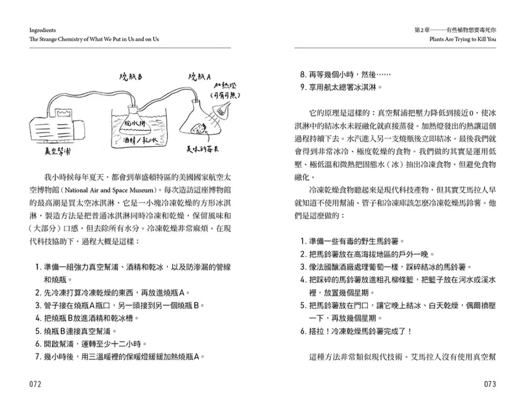 ►日常生活中的一切都由化學物質構成,可惜很少人是化學專家。本書帶領我們探索食品標籤和各種新聞報導裡,那個難以理解的多音節世界。翟登幽默和科學兼而有之,不只讓我們成為更懂化學物質的消費者,更讓我們領會帶動世界運作的化學知識。——科普節目《科學小天才》製作人、撰稿及主持人喬‧韓森