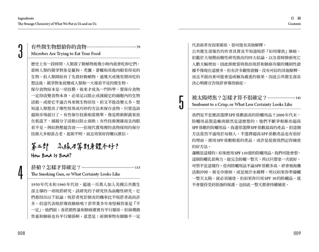►這本書淺顯易懂地介紹與健康息息相關的化學知識,同時引人入勝地說明科學研究如何進行,以及科學知識是怎麼建立的。喬治非常擅長呈現化學能解答關於健康和環境的問題,以及化學受政治、文化,甚至觀點影響非常深。——美國公共電視《概念頻道》(Idea Channel)主持人麥可‧羅涅塔
