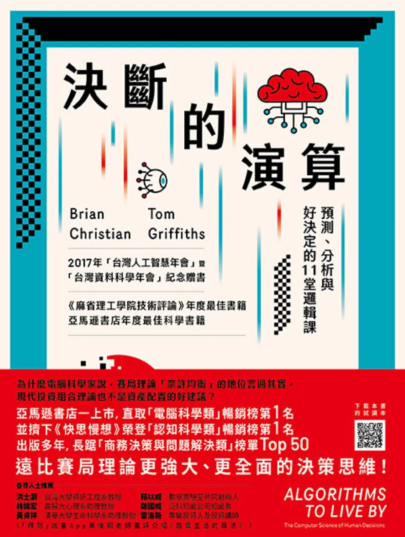 ►深入淺出又有趣,讓人讀得欲罷不能。我們都聽說過演算法威力強大,但《決斷的演算》深入淺出地解說它們的運作方式,以及我們可以如何運用它們,在日常生活中做出更好的決定。