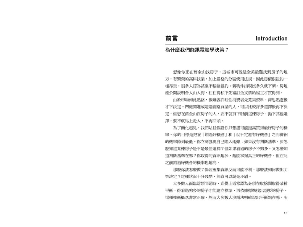 為什麼電腦科學家說,賽局理論「奈許均衡」的地位言過其實,「現代投資組合理論」也不是資產配置的好建議?本書訪問近五十年來最知名演算法的設計者,了解他們如何教電腦發揮最大效用,自己又從中學得什麼生活智慧,內容顛覆你對於「合理」的看法,眾多讀者大推:「真是過癮!」