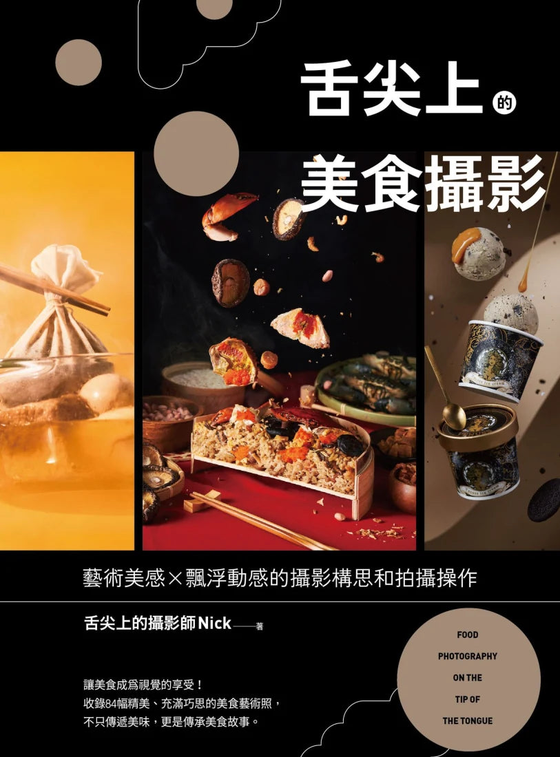 這本書萃取了Nick在拍攝過程中,以美術場景和特效手法所完成的奇幻畫面菁華。希望藉由分享這些心得和技巧,讓大家了解攝影與視覺的樂趣所在,進而啟發更多人探索美食攝影的魅力,並在自己的創作中找到靈感與方向!