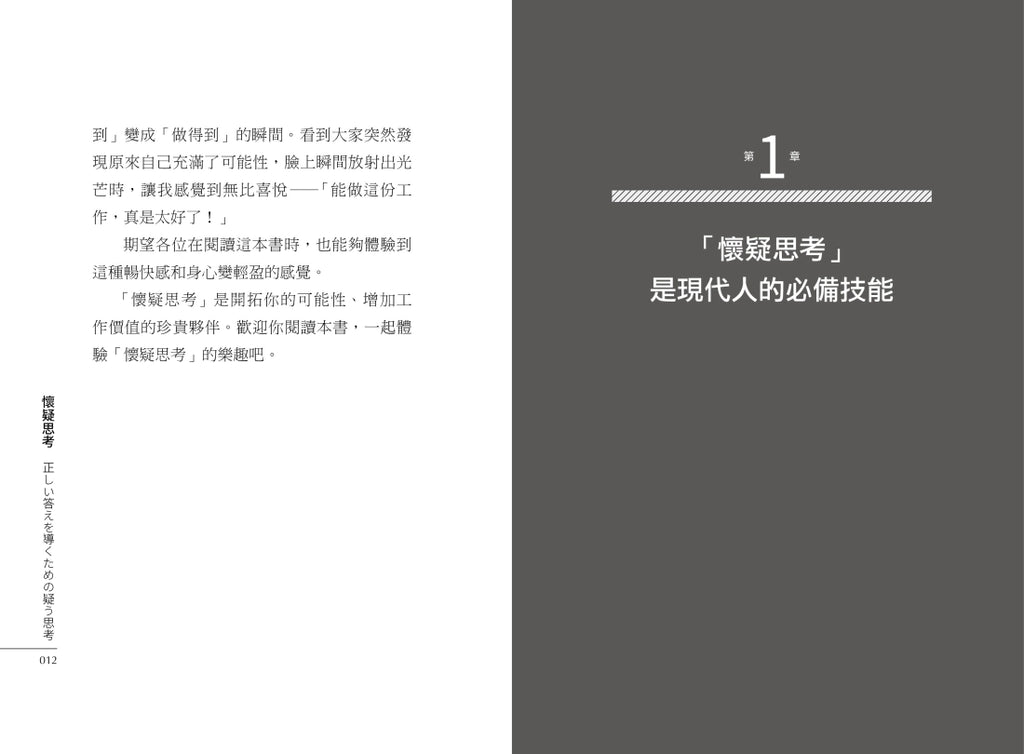 科技發展導致社會變遷,市場和日常生活也正在快速發生變化,舊有的機會持續消失,但是新的可能性也不斷出現。不論你學什麼、做什麼,「懷疑思考」都能夠幫助你探索不同觀點,把原先的「做不到」變成「做得到」。