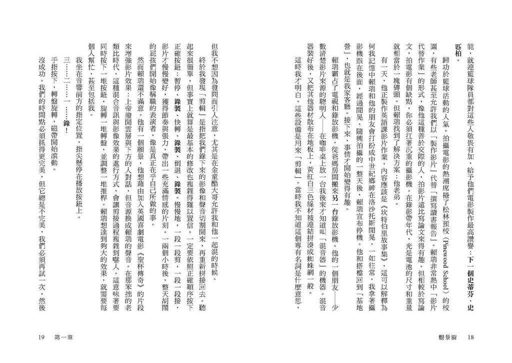 在自傳《觀景窗》中,朱浩偉首次將鏡頭對準自己,運用高明的電影運鏡手法,以及真誠的筆觸,娓娓道出一段普世性的故事──