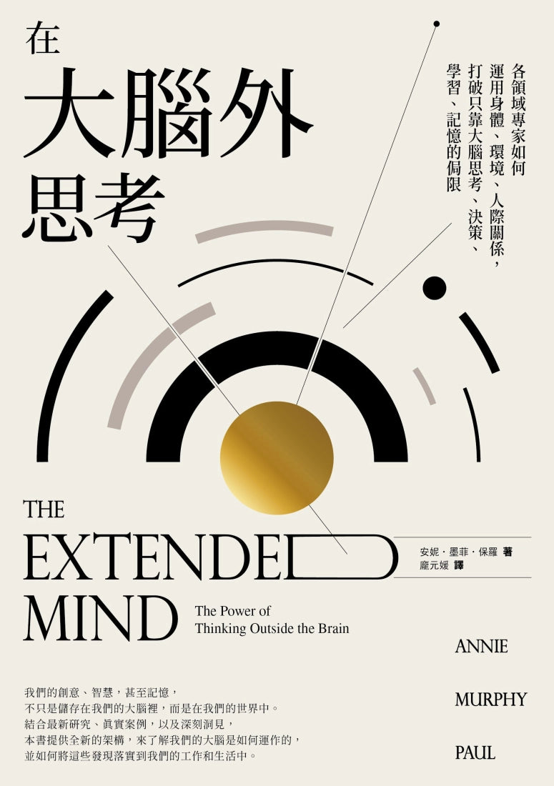 科普作家安妮‧墨菲‧保羅在《在大腦外思考》說明了,我們可以如何「在大腦外思考」,也就是如何把外部的各種資源拉進我們的思路中。當我們只靠大腦思考時,其實是限制了自己。擴展我們的心智,就會打開各種新的可能性,讓我們更專注、更有創造力,也更有創意,簡言之,就是更聰明。