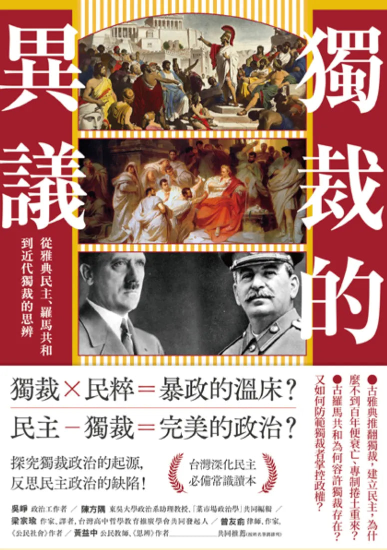 民主自二千年前誕生的那一刻起,便與獨裁陷入了難分難捨的關係。不論是古代雅典或羅馬,或是今天,民主社會最重要課題,便是思考獨裁存在的異議!