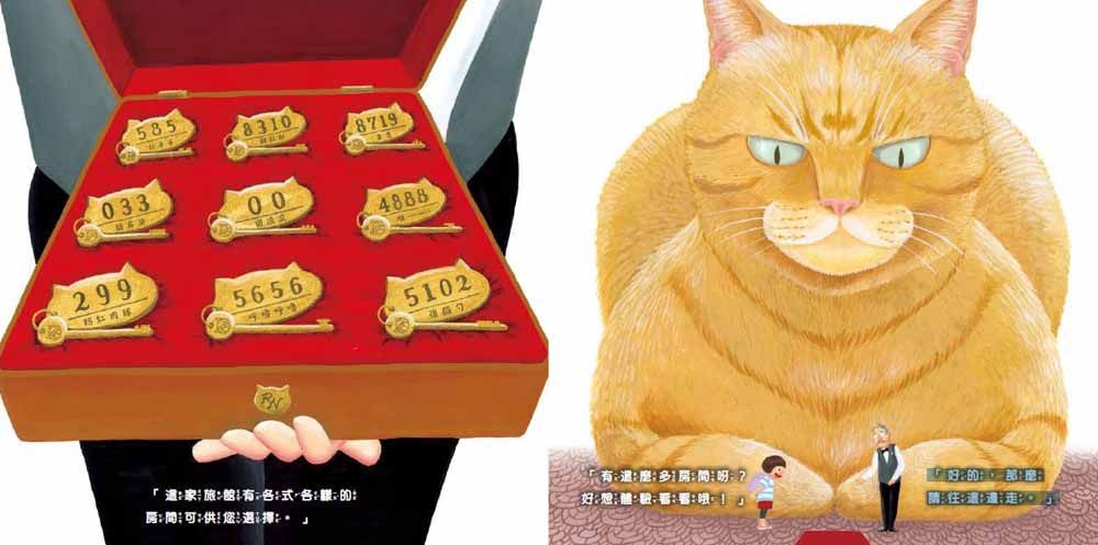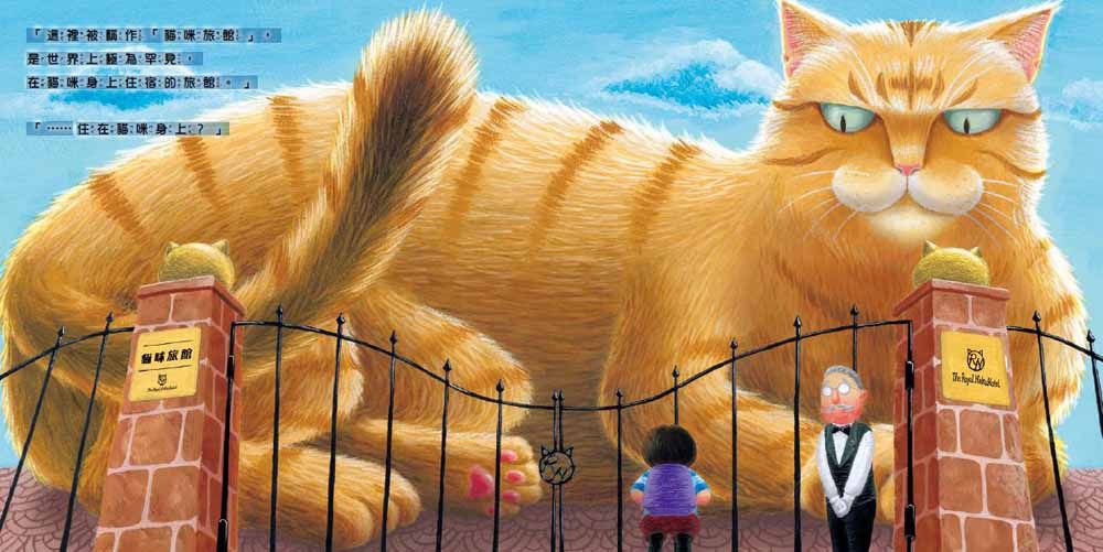 小女孩在放學回家的路上,發現前方有一條大大的尾巴晃來晃去……不禁被吸引住了,好奇心驅使下,前往一探究竟,只見大門上有一塊醒目的招牌:「貓咪旅館!」