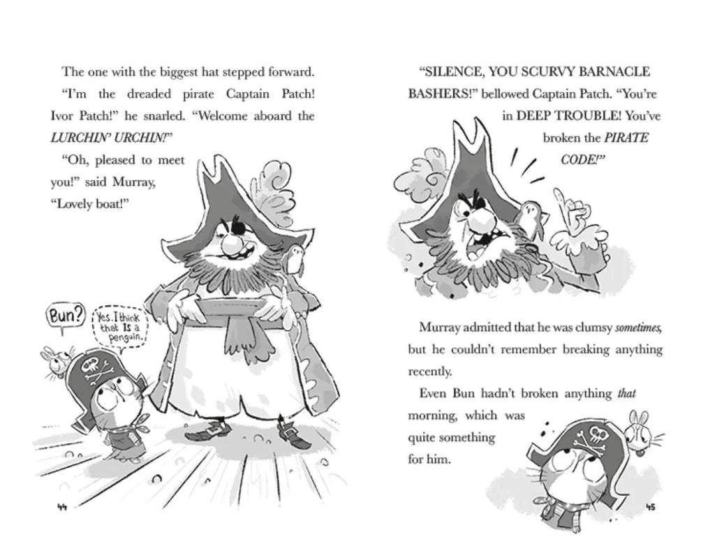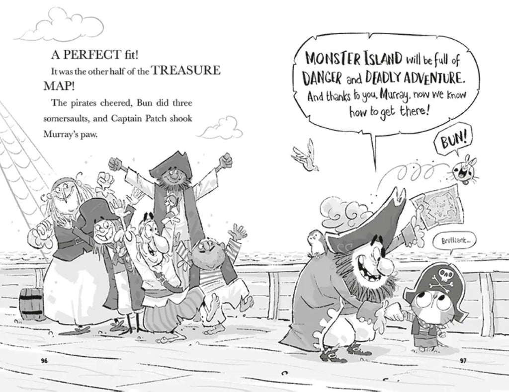 When Murray and Bun travel through the cat flap, they find themselves in a land of PIRATES! It's high stakes on the high seas when Murray and Bun are kidnapped by the dreaded pirate Captain Patch. And once they discover a secret map that takes them to MONSTER ISLAND, it's up to Murray and Bun to dig up the buried treasure--or risk walking the plank.
