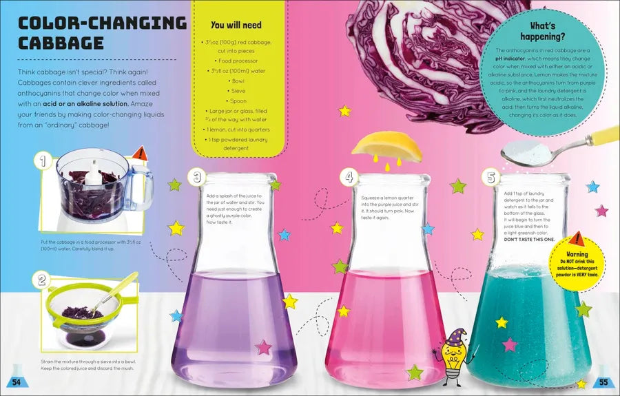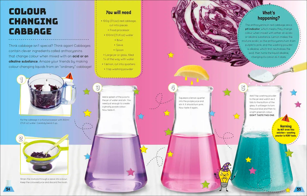 - Fun experiments, including tricking your taste buds, making glow-in-the-dark drinks, and creating edible chemical reactions.