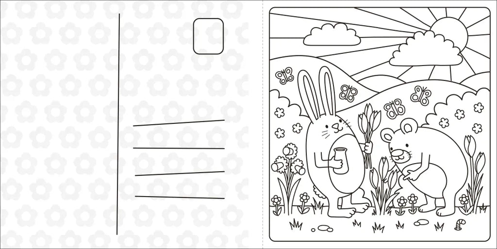 This spring coloring book features: