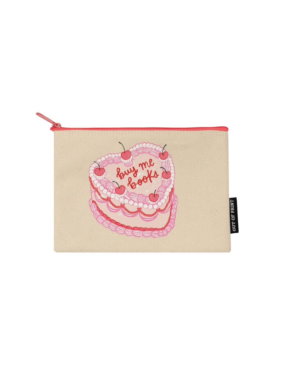 This pouch features a delightful design of a cake adorned with the playful phrase "buy me books." Perfect for book lovers and stationery enthusiasts, it’s an ideal accessory for storing your pens, pencils, bookmarks, and other small essentials.