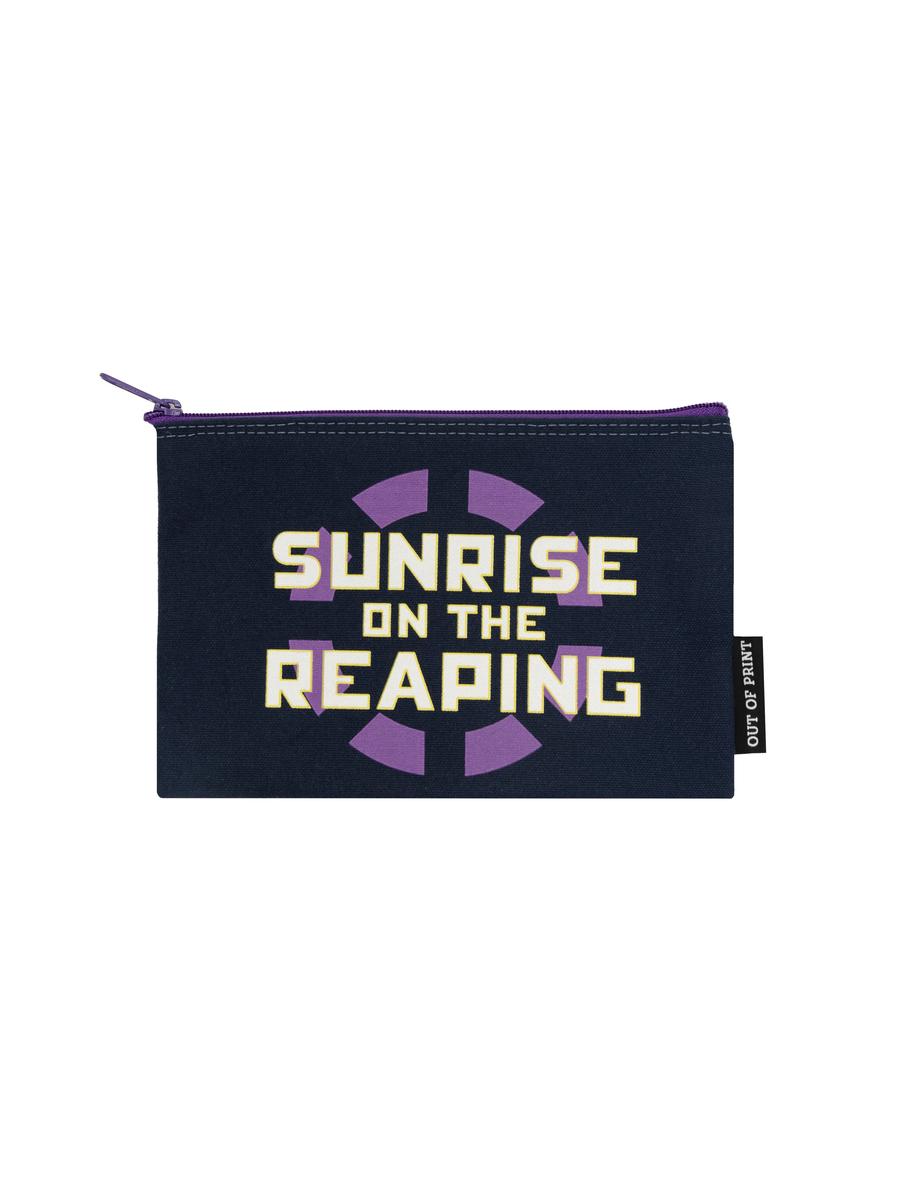The perfect companion for every Hunger Games fan. The Sunrise on the Reaping pouch features the cover image for the new book - Sunrise on the Reaping, on one side, and the quote, “They will not use my tears for their entertainment.” on the other side.
