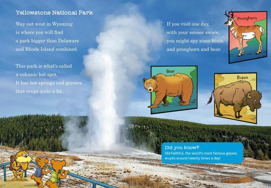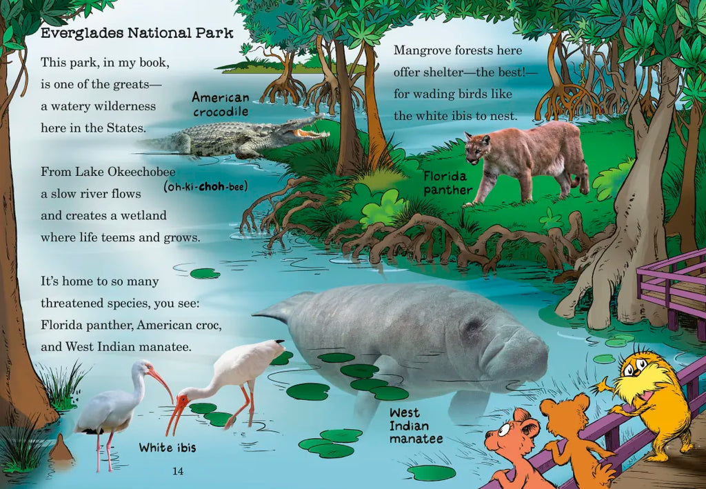 The Lorax visits 15 of America's favorite national parks and explains what makes each unique and worth protecting for future generations, including: