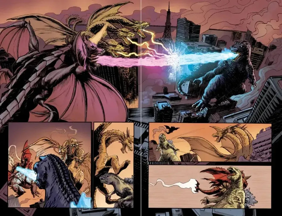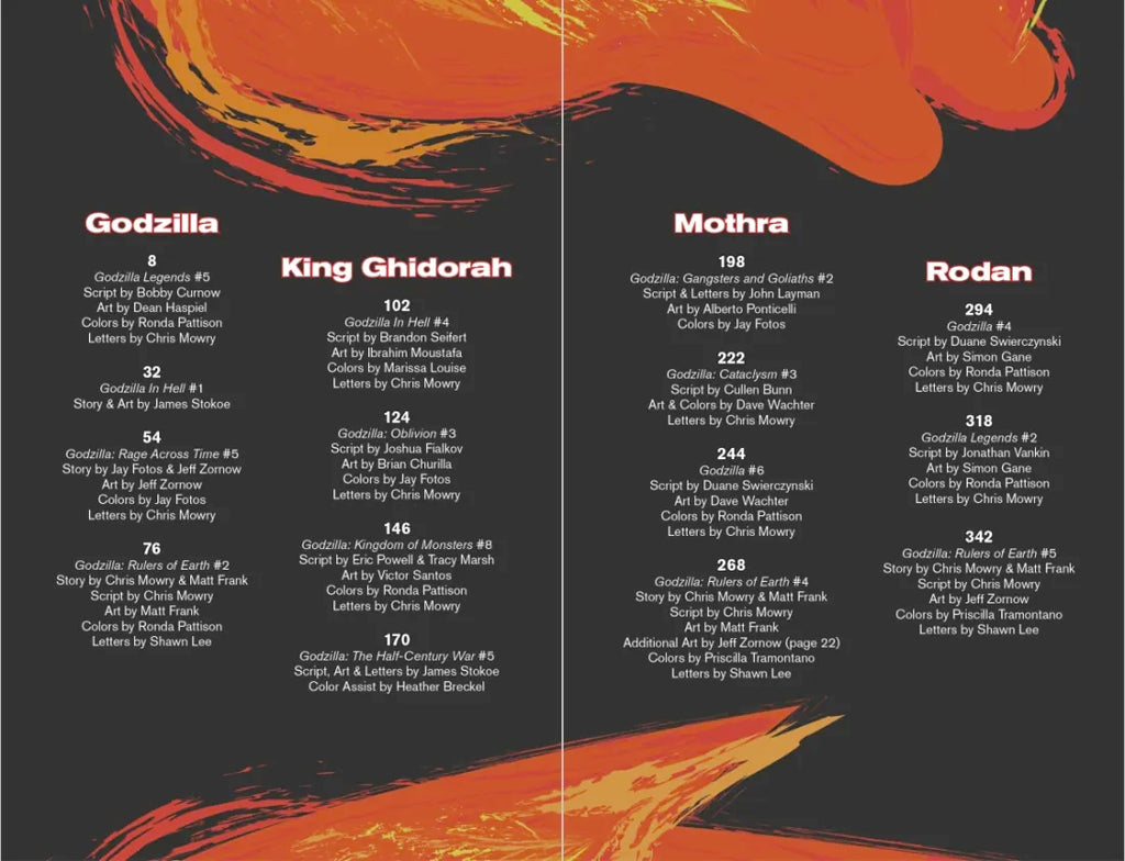 All the best monster stories that can fit in one book, with features on Godzilla, King Ghidorah, Mothra, and Rodan!