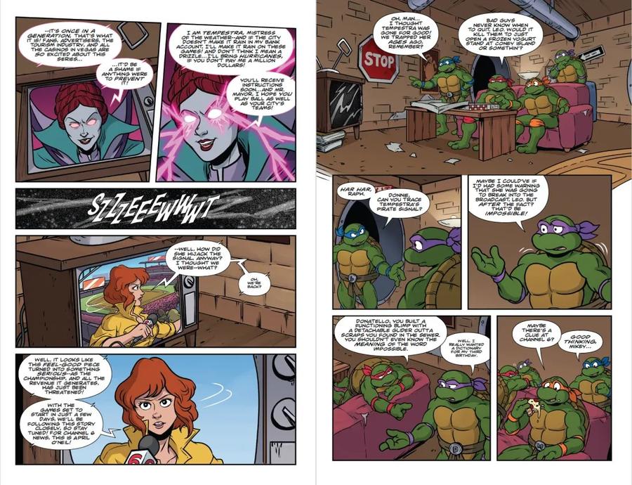 Will the Turtles and Casey Jones be able to take on such foes as Tempestra, Hob, Razhar, Krang, Tokka, and the Dark Turtles? You’ll just have to read to find out! Collects issues #22–26 of the Teenage Mutant Ninja Turtles: Saturday Morning Adventures series.