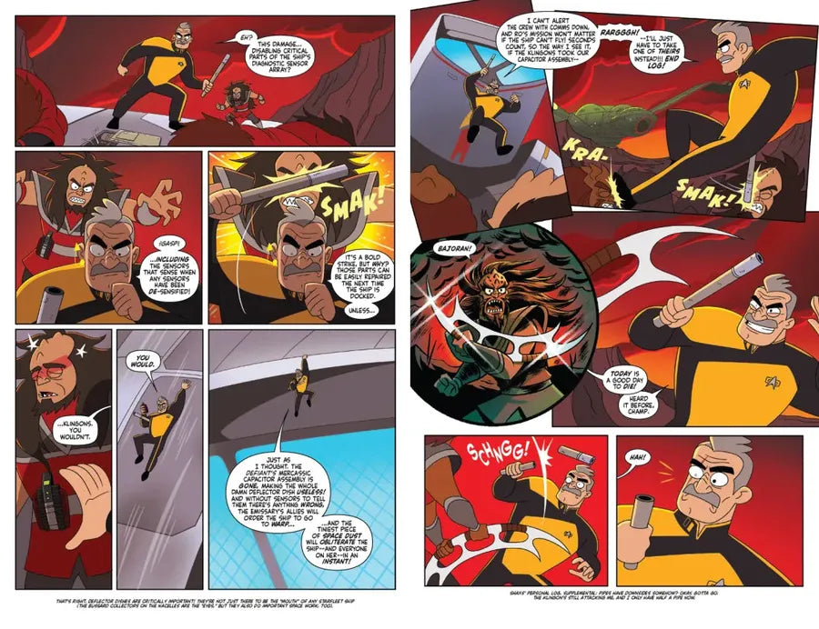 From the humorous world of Lower Decks come two adventures featuring the U.S.S Cerritos’ security chief doing what he does best, fighting fascists, in these comics based on the hit series!